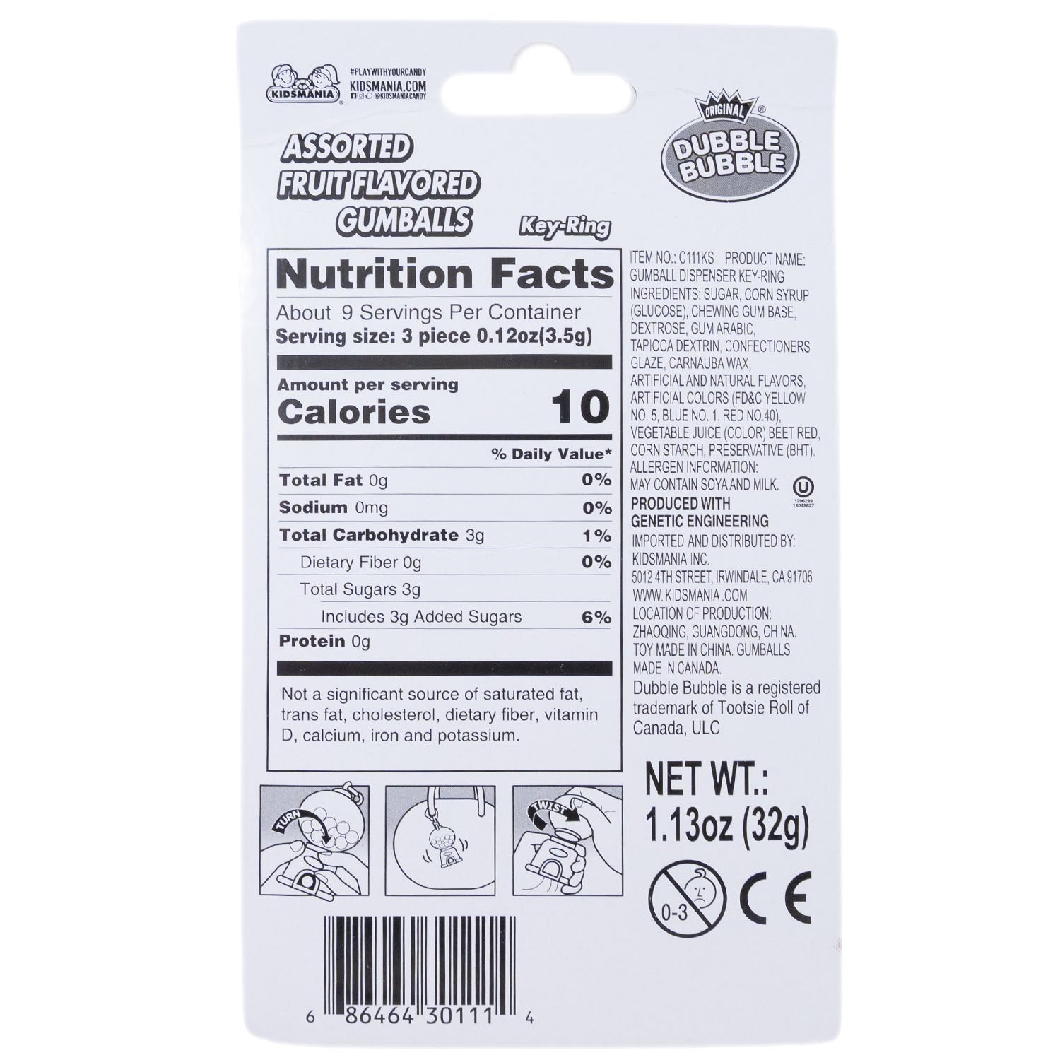 Kidsmania Dubble Bubble Gum Dispenser Keychain - 1pc